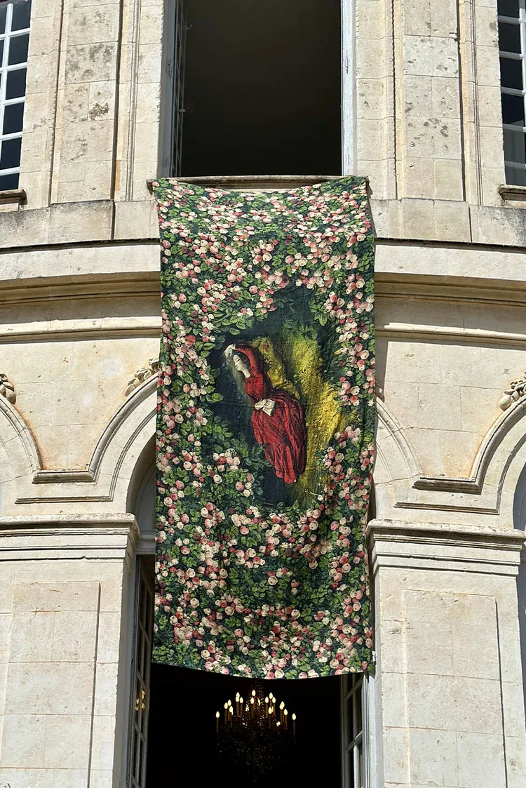 If you click through to the product page, you can see how they've styled it both for springtime and for Holiday—and to me, this versatility is the mark of a good tablecloth. On the one hand, it's festooned with florals (pretty springy), but on the other hand, it's essentially red and green, so there you go. I can't quite explain it, but I feel like this would perform well with the Taylor Swift set too—the art is vaguely Ophelia-esque, isn't it?